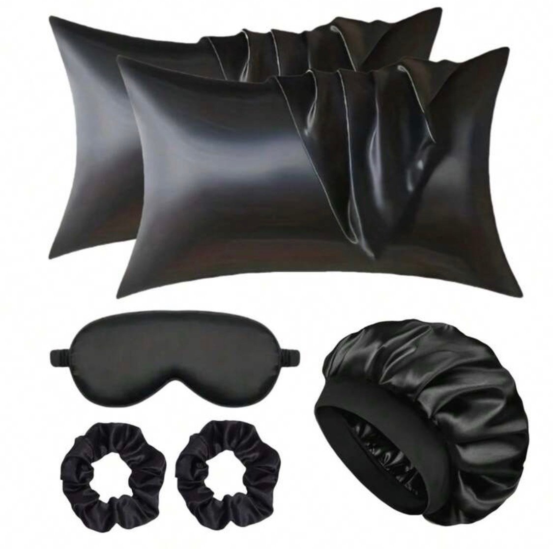 Every item in this collection works together to protect your hair’s natural moisture, maintain your install, and prevent the dryness and breakage caused by cotton fabrics. Whether you’re wearing a wig, natural hair, braids, or a protective style, this set keeps your look smooth, hydrated, and undisturbed while you sleep.