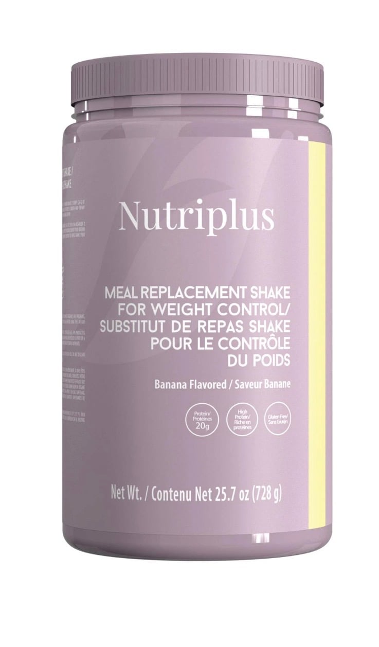 Banana: Designed to aid and maintain weight loss — just replace 1 to 2 meals per day! Nutriplus Meal Replacement Shake provides essential vitamins, minerals, and high-quality plant-based proteins. Each serving delivers 20 g of protein, 27 vitamins and minerals, and is high in fiber with prebiotics to support daily nutrition, all without gluten or preservatives. Enjoy an energy boost, better craving control, and support for strength and muscle maintenance. Available in delicious natural banana, chocolate, and vanilla flavors with a silky-smooth texture.